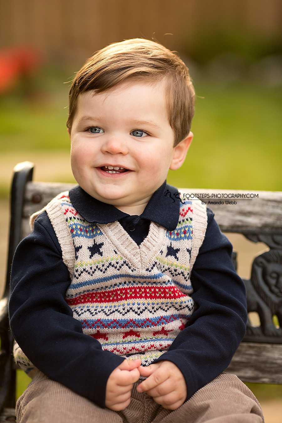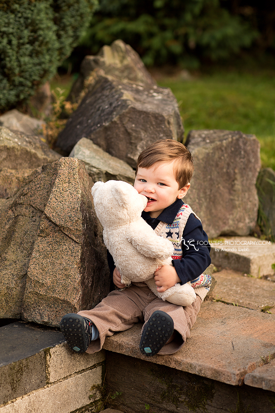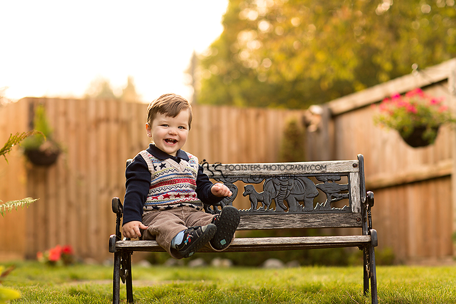 We met up at his house in order to capture some of his favorite things. You’ll notice he likes to chew the nose off his bear above – little goofball! And this bench is the perfect spot as it depict Noah and all the animals in his ark.
